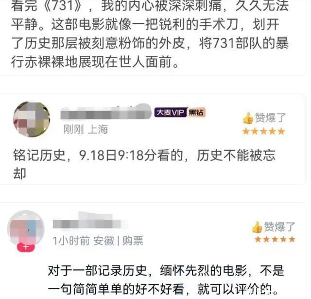 也正是很多人无法感同身受,当时先辈们的遭遇,以及所发生的真实场景, 当《731》电影宣发后,数十亿人都对其中的内容非常期待。 更有甚者认为,电影存在的意义,就是“揭开罪恶还原历史”。