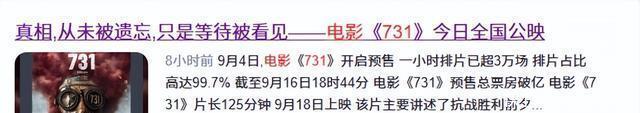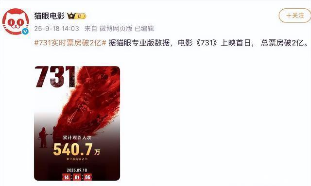 虽说9月18日,不是星期六、星期天等节假日。 可买票观影的人,却不比贺岁电影少。 也正因如此,仅过去一个上午,《731》的票房就突破了两个亿。